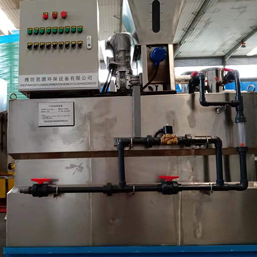 濰坊思源環保設備有限公司加藥裝置開發生產的一款自動加藥產品,主要用于電廠的鍋爐給水、循環水、加聯氨、磷酸鹽等處理,也可用于石油、化工、環保、供水系統等行業。單元組合式加藥裝置,主要有溶液箱、計量泵、過濾器、安全閥、止回閥、壓力表、緩沖罐、液位計、控制柜等組成一體化安裝在一個底座上。用戶只需將組合式加藥裝置安放在加藥間,將進水口、出藥口接好并接通電源即可啟動投入運行,這種工廠化的整套裝置,可大大減少設計和現場施工的工作量,對整機系統的質量、安全和現場投運提供了可靠的保證。