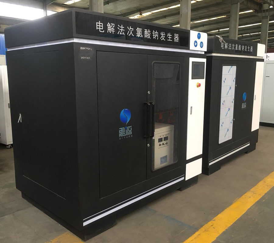 思源環保生產的SYDC型電解次氯酸鈉發生器是稀鹽水通過電解電在直流電場作用下進行電化學反應,并在純鈦電的釕、銥等貴金屬涂層的催化作用下,產生純凈次氯酸鈉液體的消毒液生產設備。次氯酸鈉溶液是一種強氧化劑,具有很強的殺菌、漂白效果,是目前應用廣泛的一種消毒劑。